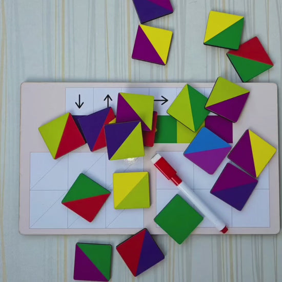 The Challenge: Can you match the pattern and follow the arrows? Kids use logic and color recognition to arrange the tiles correctly, creating pathways and solving visual puzzles. Each configuration offers a new challenge to master!